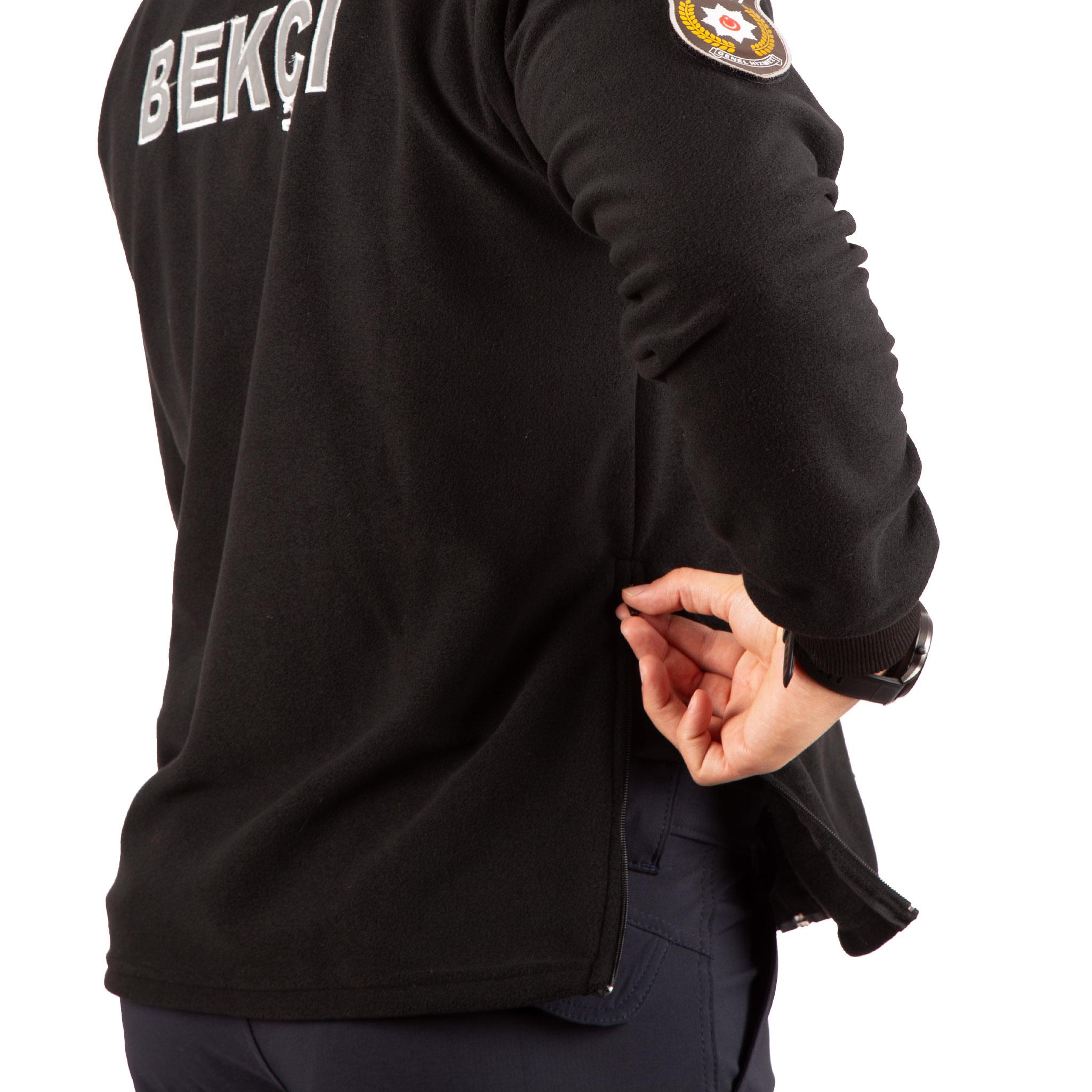- Görev esnasında pratik kullanım için tasarlanan bekçi polar hırkanın her iki yanında tabancaya kolay erişim sağlayan fermuar sistemi bulunur.