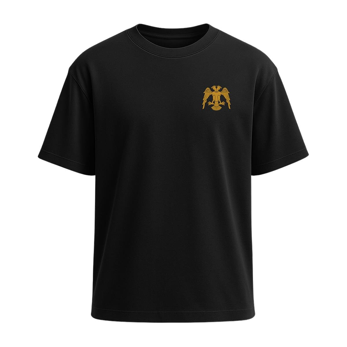 Mini Çift Başlı Kartal Baskılı Tişört Siyah V2